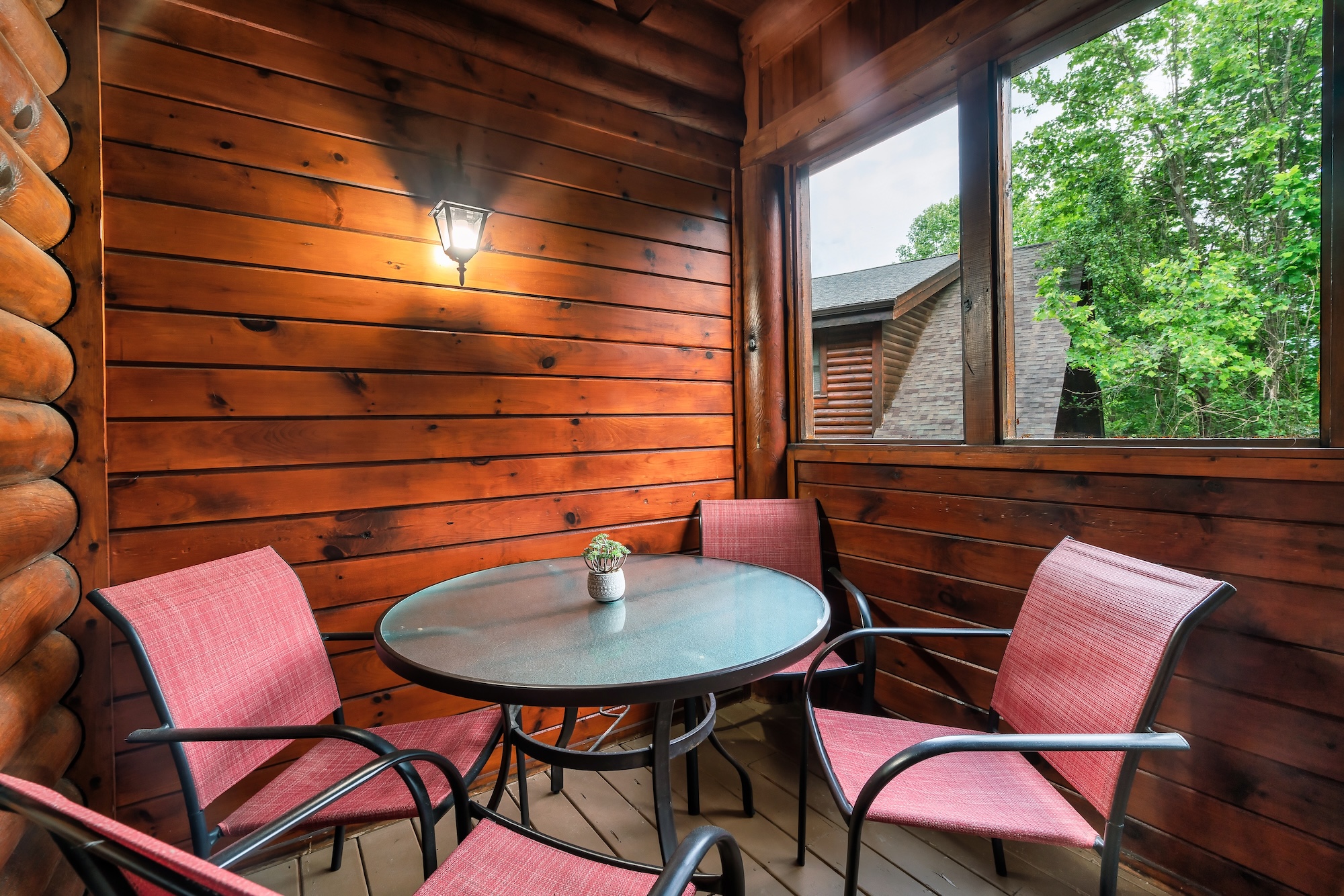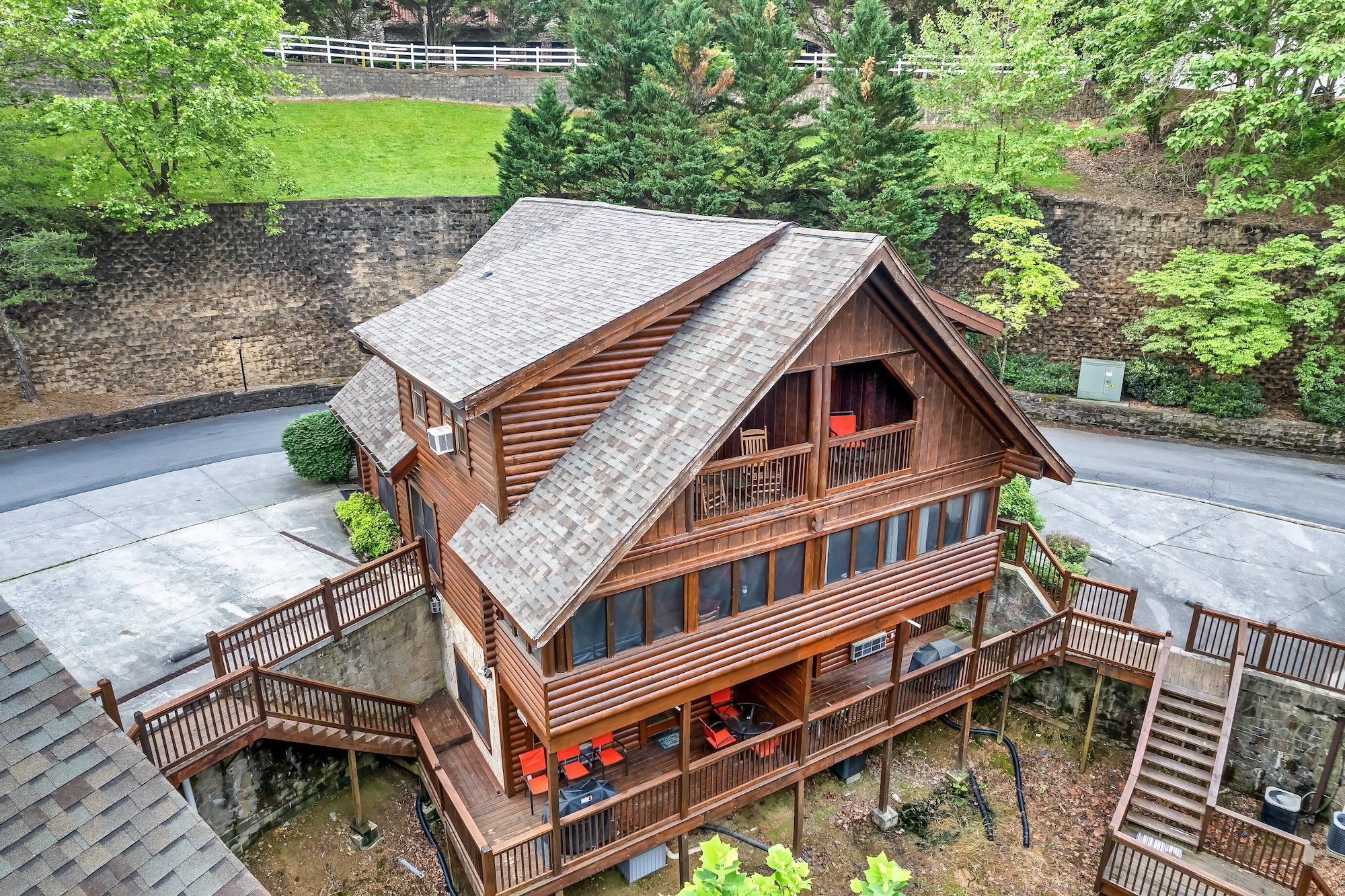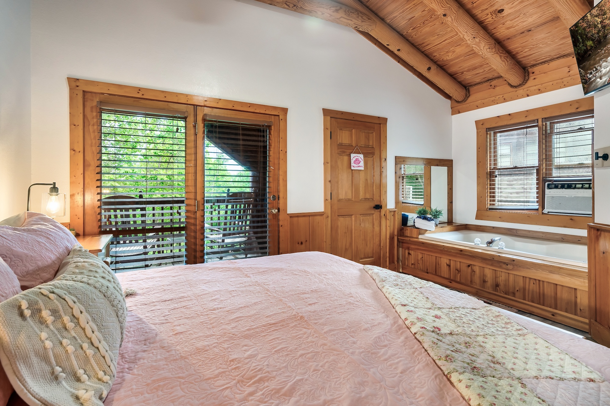 The top floor offers a luxurious master bedroom with a king-size bed and a spacious bathroom featuring a relaxing Jacuzzi tub. A private deck allows you to enjoy the fresh mountain air with a cup of coffee or a drink.