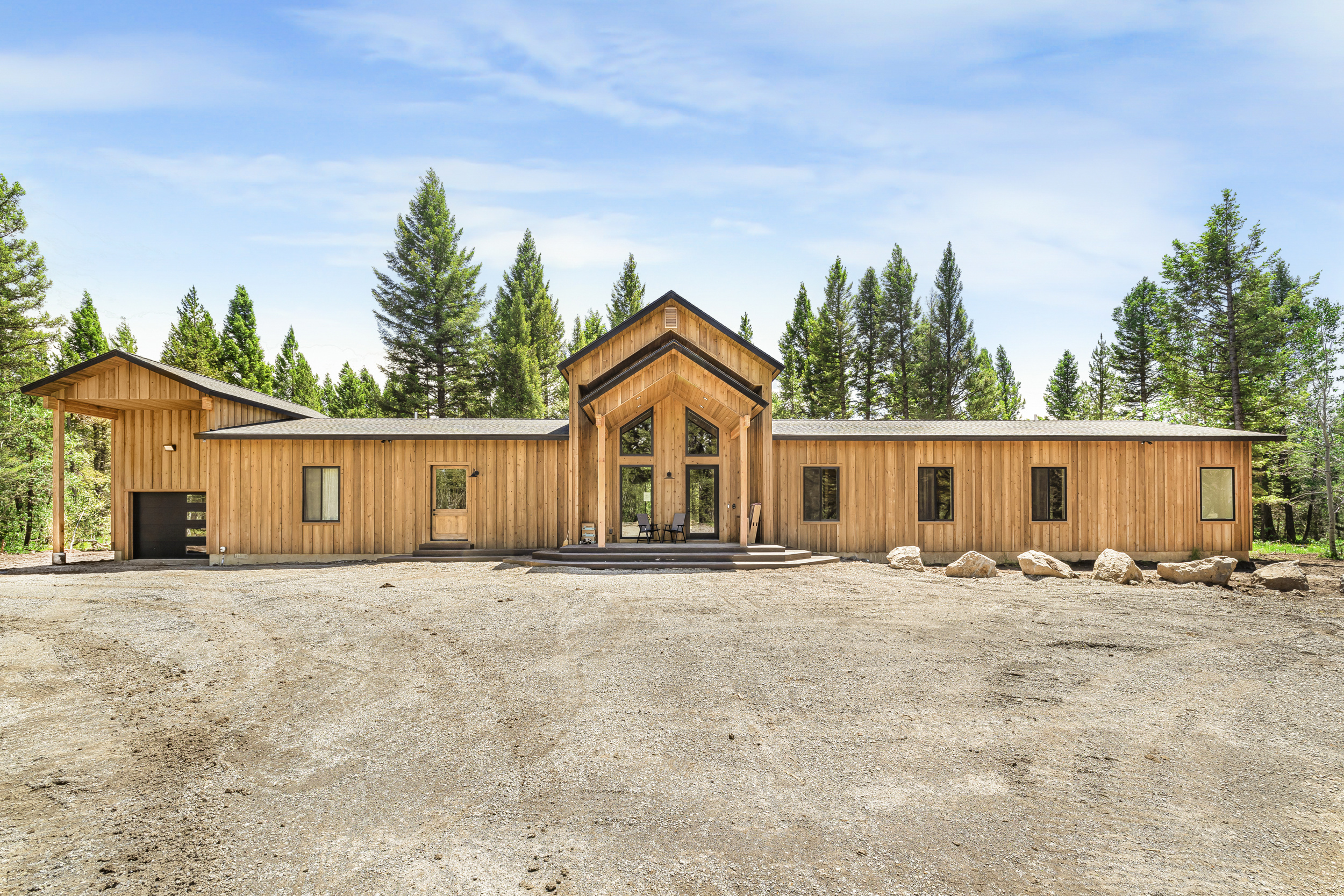 The expansive circular driveway provides a grand entrance and practical parking solutions for guests bringing trailers and outdoor toys. Designed for easy entry and exit, it accommodates vehicles of all sizes. Additionally, Tesla chargers are available upon request for eco-conscious guests. Enjoy peace of mind knowing every detail has been considered to enhance your experience at our secluded retreat in Island Park, Idaho. We are approximately 45 minutes from the West Yellowstone entrance of the park.