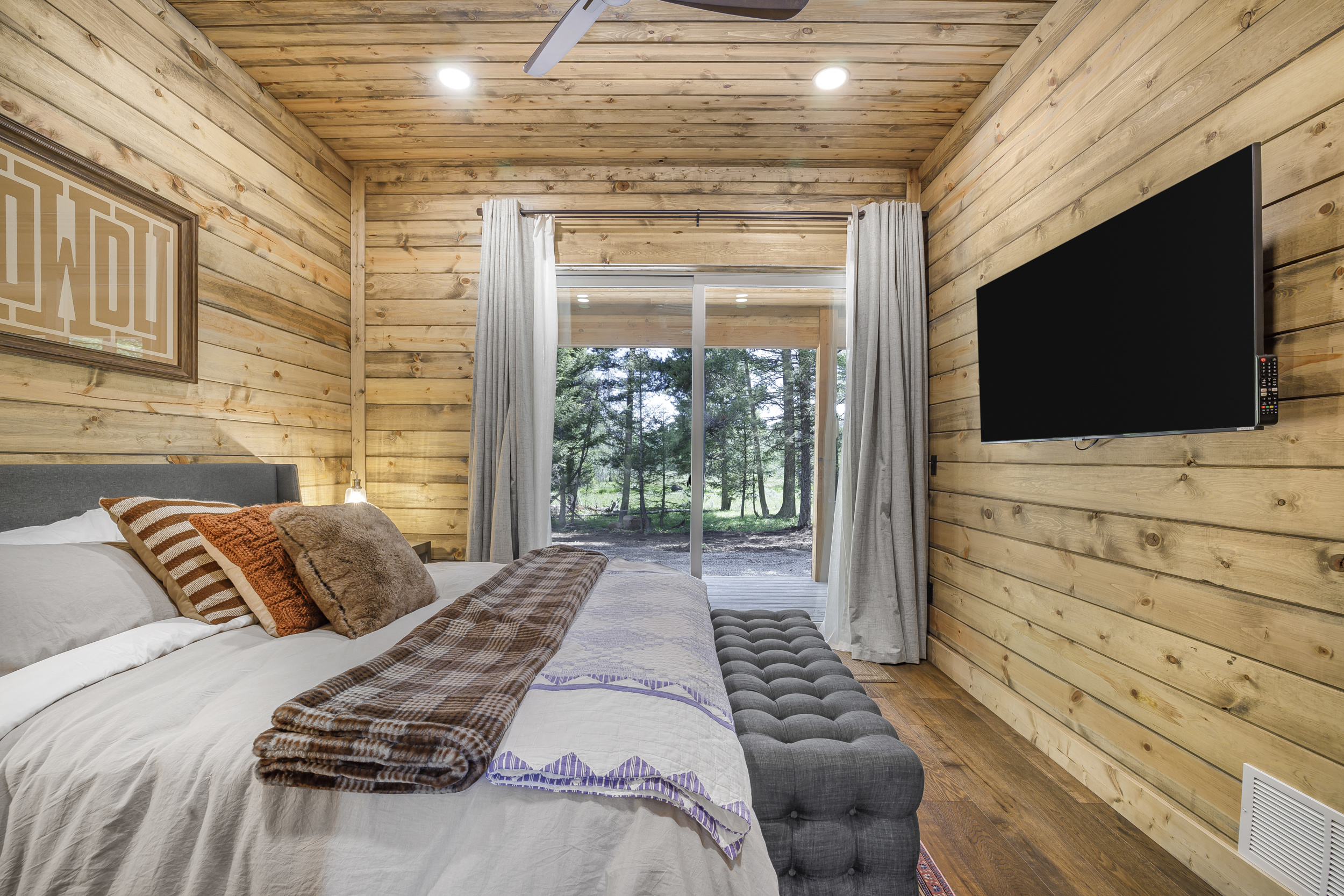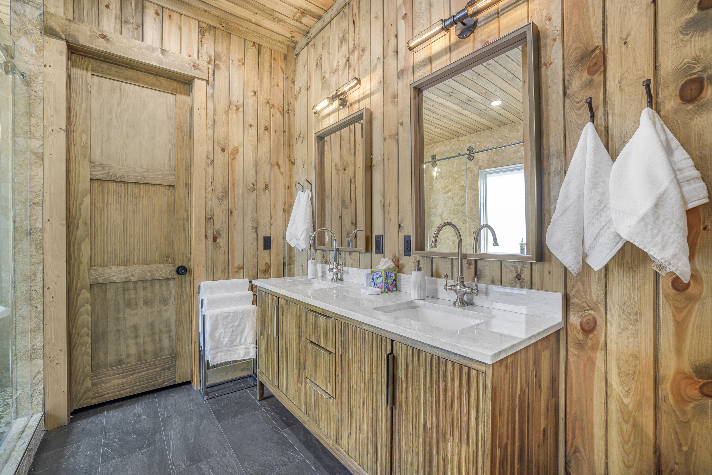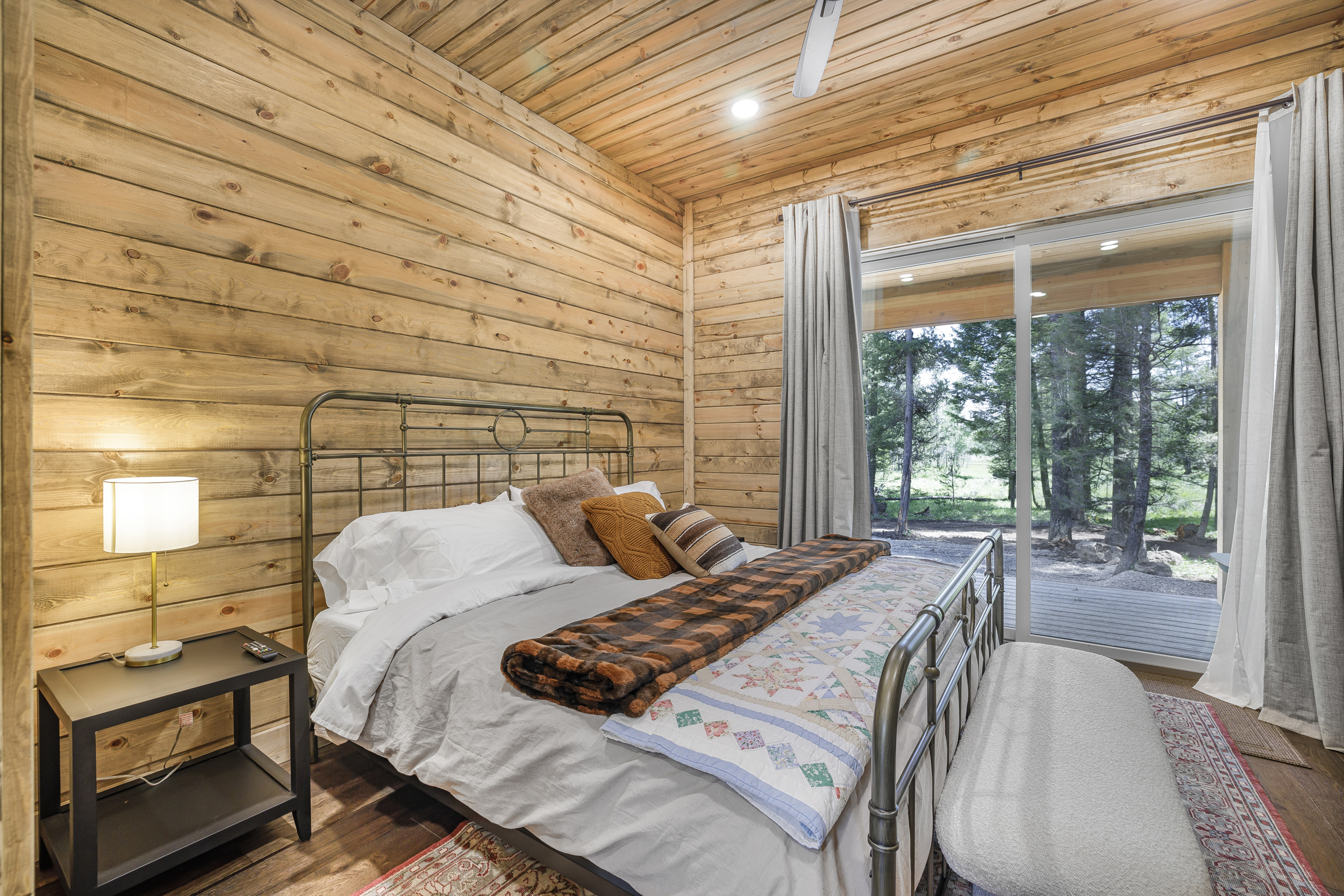 Enjoy a restful slumber in our thoughtfully designed bedrooms, each offering a sanctuary of comfort and privacy. The Yellowstone House comfortably accommodates up to 17 guests with 4 king suites (each with a private bathroom) and a custom-built bunk room featuring 3 queen beds, 3 twin beds, and a private bathroom with dual shower rooms.
